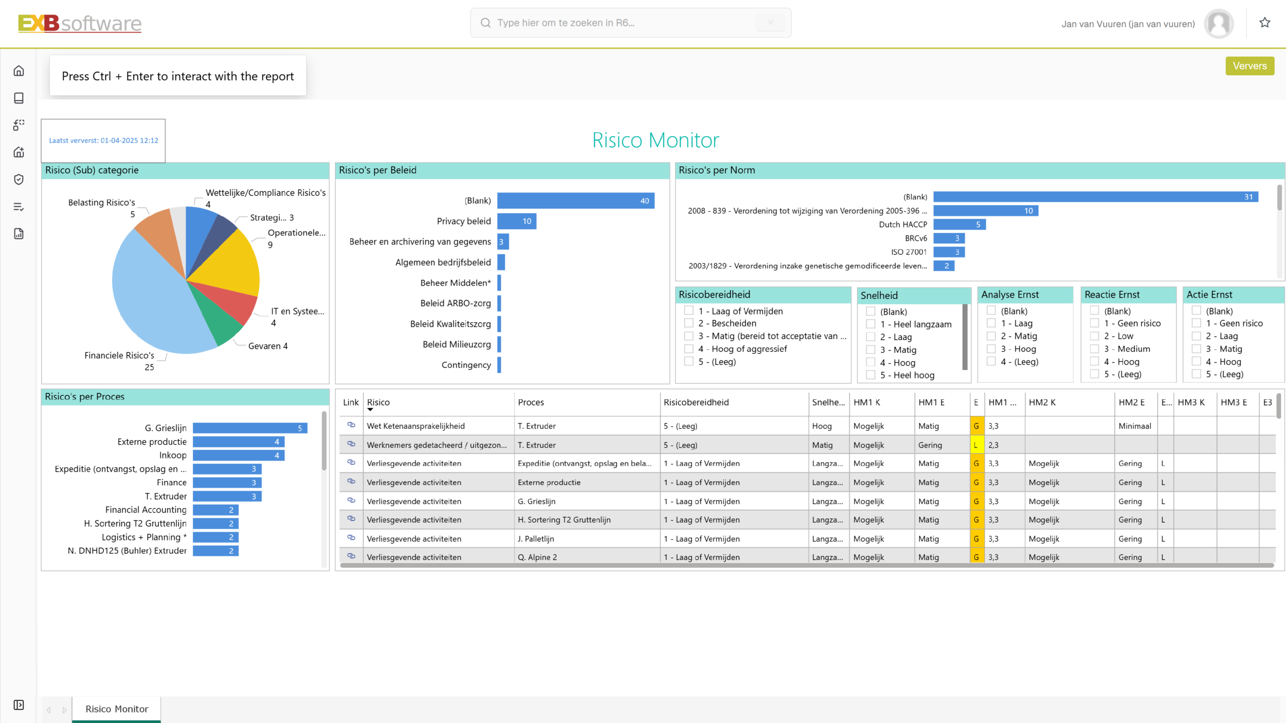 EXB Software structureert risico’s binnen één geïntegreerd managementsysteem. Risico’s worden gekoppeld aan processen, afdelingen en verantwoordelijkheden, waardoor jij gericht kunt sturen en rapporteren.